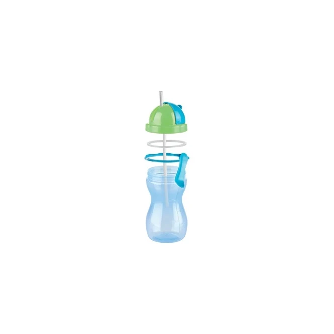 Детская бутылочка с гибкой силиконовой трубочкой и уплотнением, шкалой для удобного отмеривания и зажимом для подвешивания.