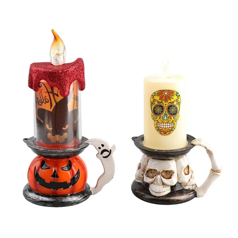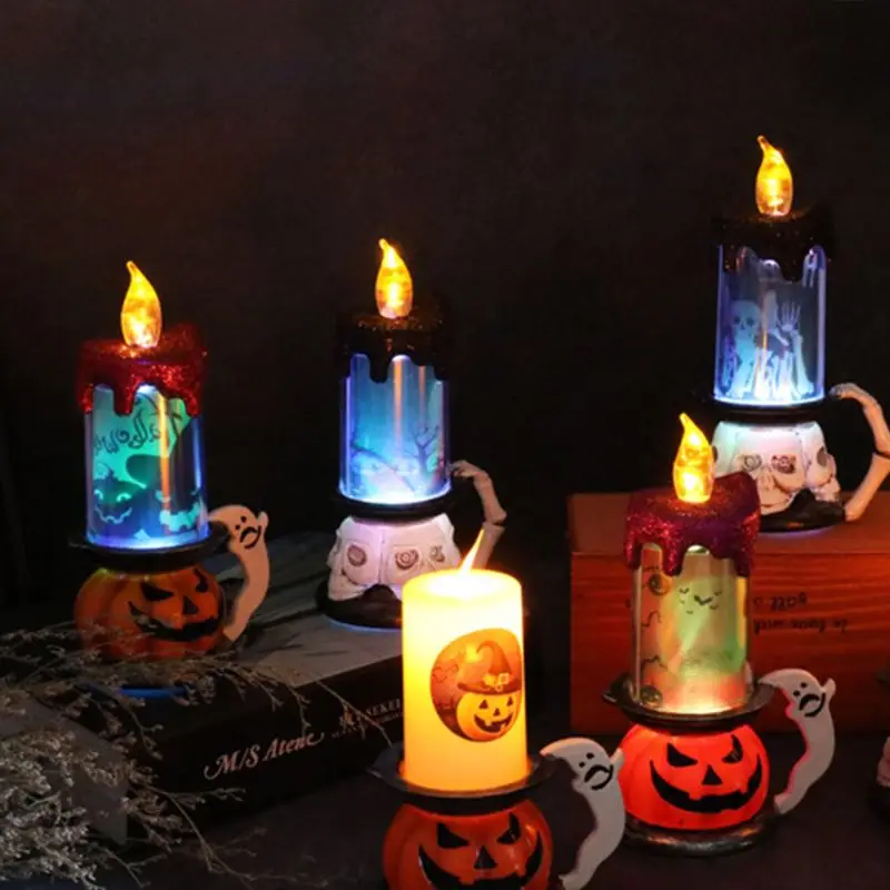 Светодиодный светильник в виде черепа тыквы на Хэллоуин, мерцающий свеча, домашние вечерние лампы, украшение для фестиваля, реквизит для бара