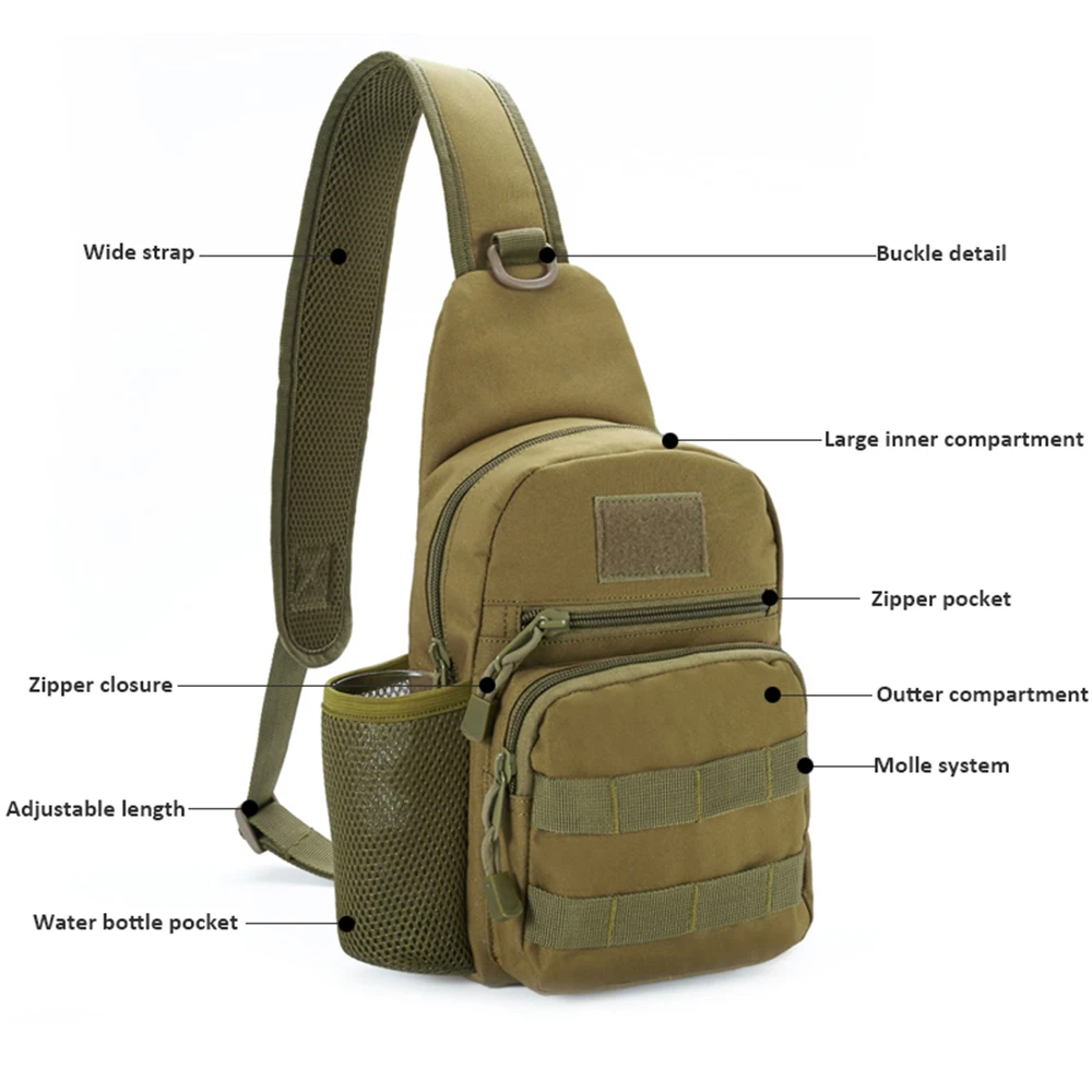 Нагрудная сумка, подходящая как для мужчин, так и для женщин, выполнена в однотонном стиле или с камуфляжным принтом. С несколькими карманами и боковым карманом для бутылок, его емкость вполне идеальна. Когда вы идете в поход или на велосипеде, это так удобно носить с собой эту сумку.