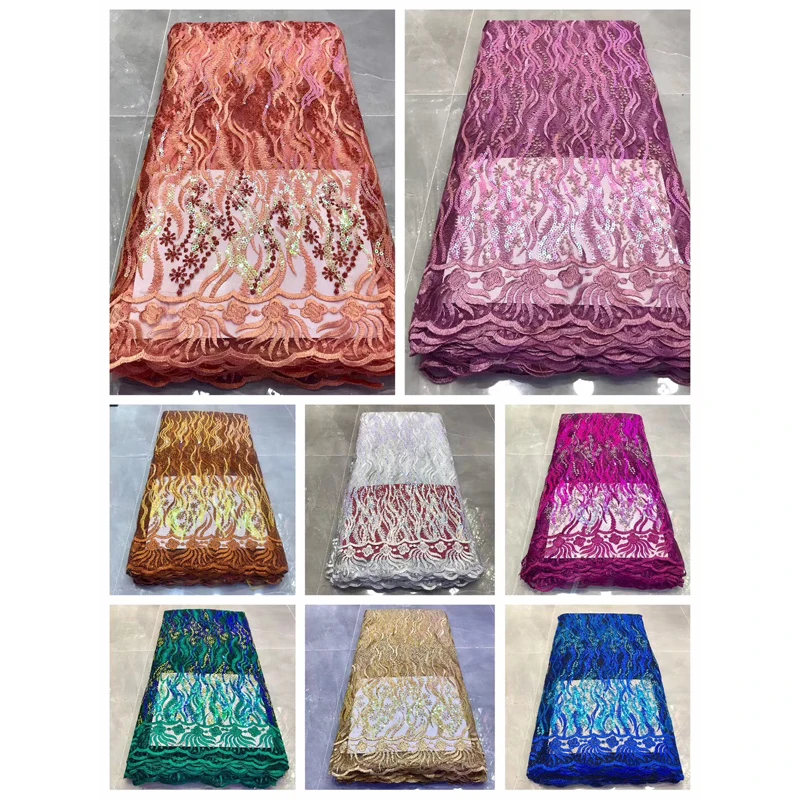 African Lace Fabric New 2020 High Quality Stripe Embroidery Sequins Organza Lace Gorgeous Beauty For Wedding