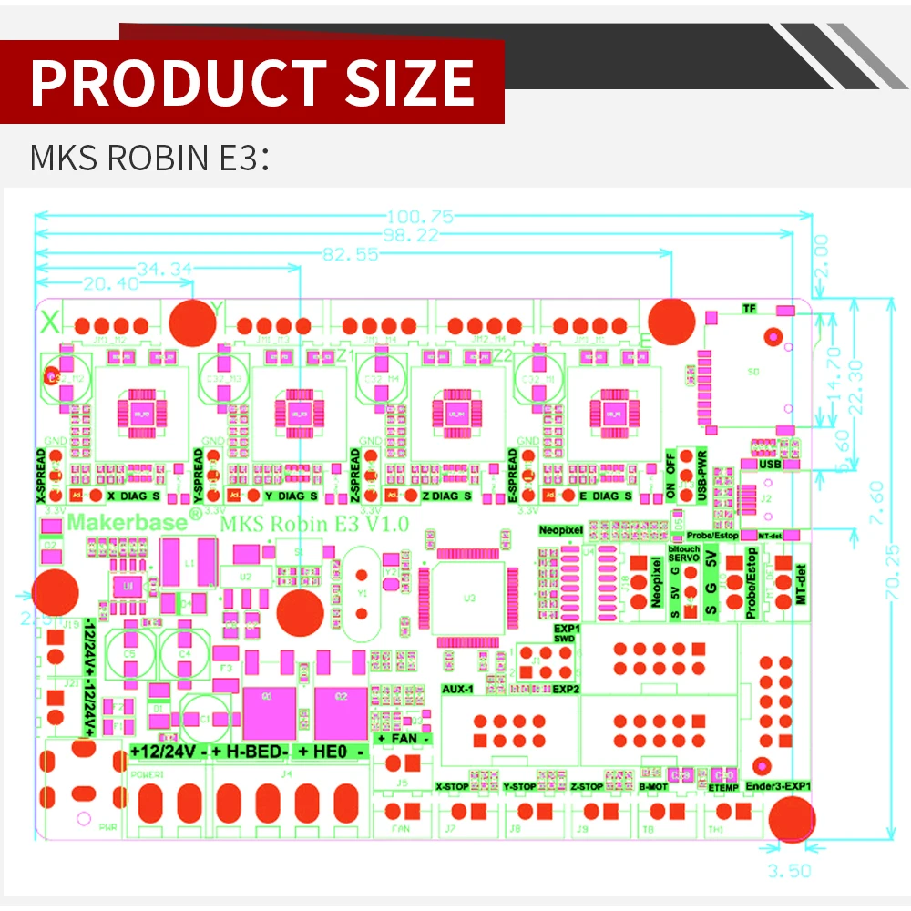 Размер и расположение установки идеально соответствуют оригинальной материнской плате Ender-3, Ender-5 и CR-10.
