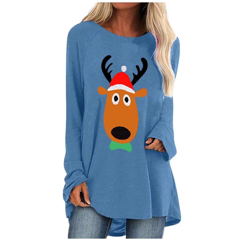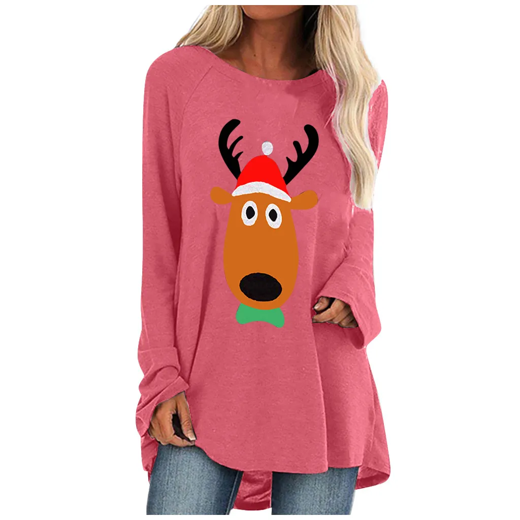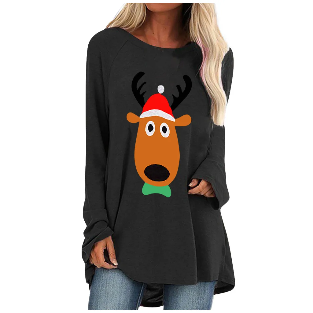 Женская модная повседневная свободная футболка с круглым вырезом и длинным рукавом, топ, блузка, пуловер
