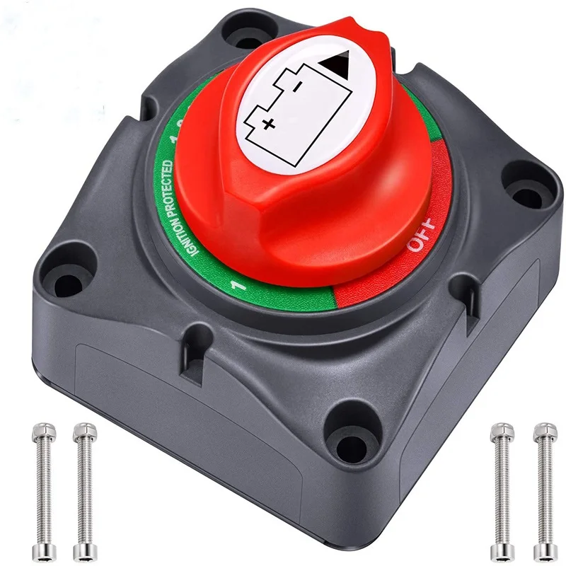 🔋【Спецификация 】: 12 - 48 В постоянного тока батарейный изолятор, 4 положения, Номинальная мощность: 200A постоянный ток непрерывный (1 час) , 455A постоянный ток прерывистый (5 мин), 1250A постоянный ток (10 сек); Напряжение: 12V-48 В постоянного тока. 🔋【Upgraded 4 позиции Design】 : 1-2-и то и другое-Off Батарея электрораспределительной коробкой многопозиционного переключателя дизайн для 2-х аккумуляторов, он может переключать Батарея 1/2 отдельно или вкл./выкл. 🔋【Сверхмощный выключатель батареи 】: Изготовлен из АБС-пластика, и 4 комплекта болтов-Луженые Медные шпильки (2x3/8 " (10 мм) И гайки для защиты зажигания, чтобы легко отличить различные шестерни, которые вы переключаете даже ночью. 🔋【Широкое применение 】: переключатель аккумулятора Kohree предназначен для изоляции и защиты электрической системы, он может стоять отдельно или быть заблокирован вместе с другим переключателем. Широко используется для RV, ATV, car, морской лодки, camper, camper, travel trailer, truck, UTV и т. д. 🔋【Safe & Protective】: главный выключатель питания поставляется с сертификацией CE и 4 съемными боковыми пластинами, задняя крышка изолирует Клеммы от любого короткого замыкания.