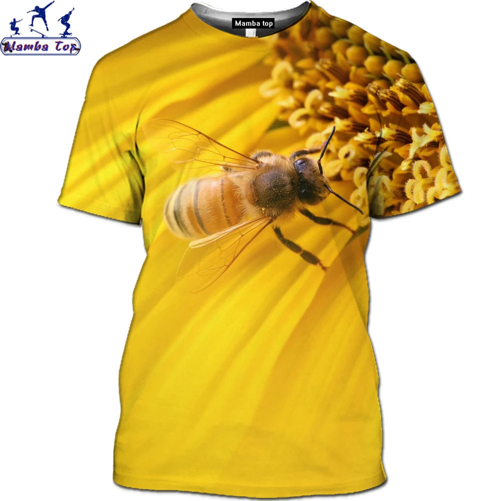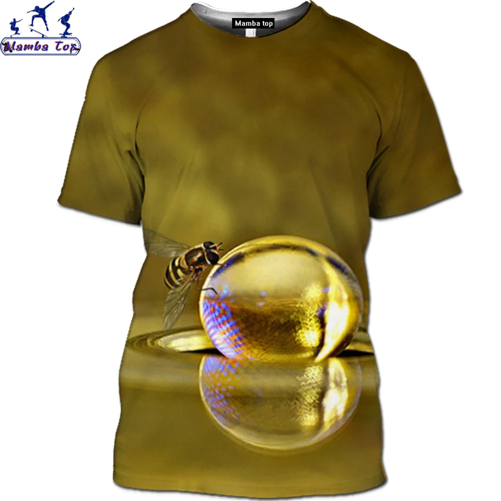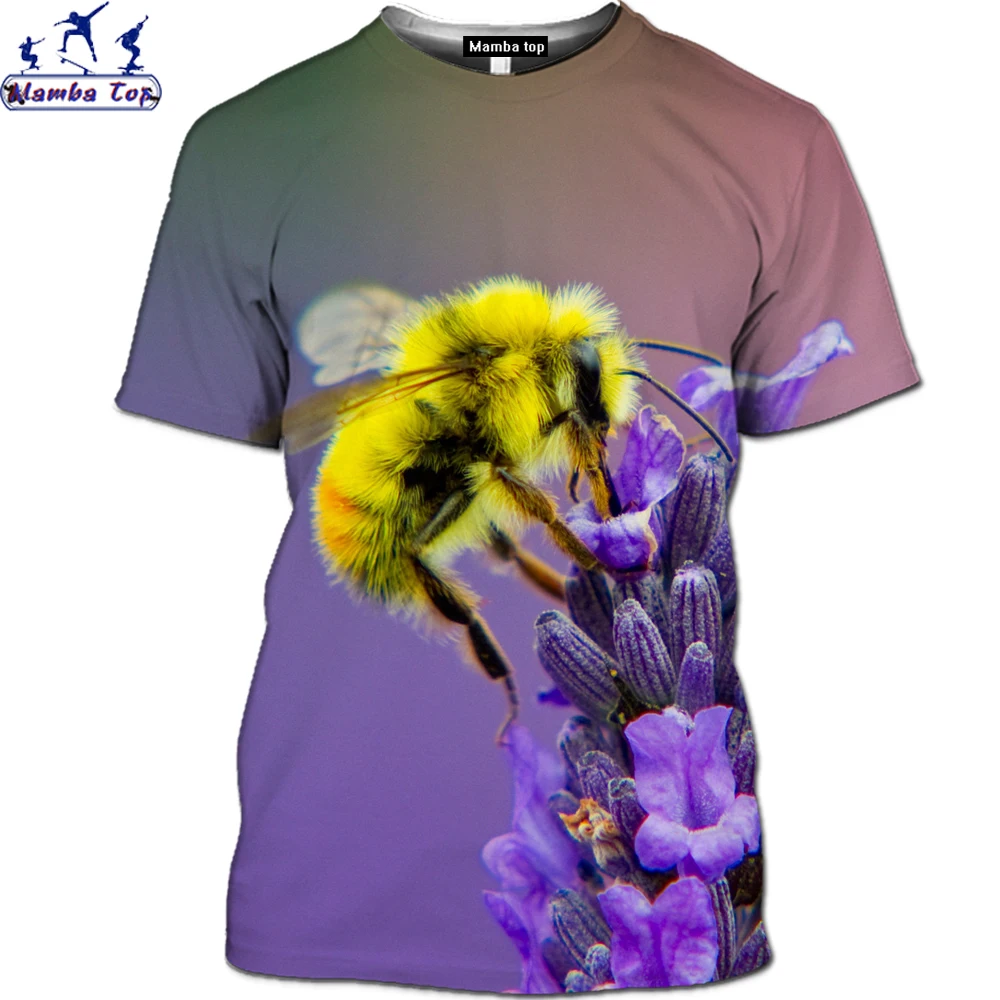 Mamba Топ летняя футболка с коротким рукавом с Пчелкой Повседневная Harajuku ОСА рубашка Пляжная Натуральная мужская футболка лесной Пион цветок насекомое Топ