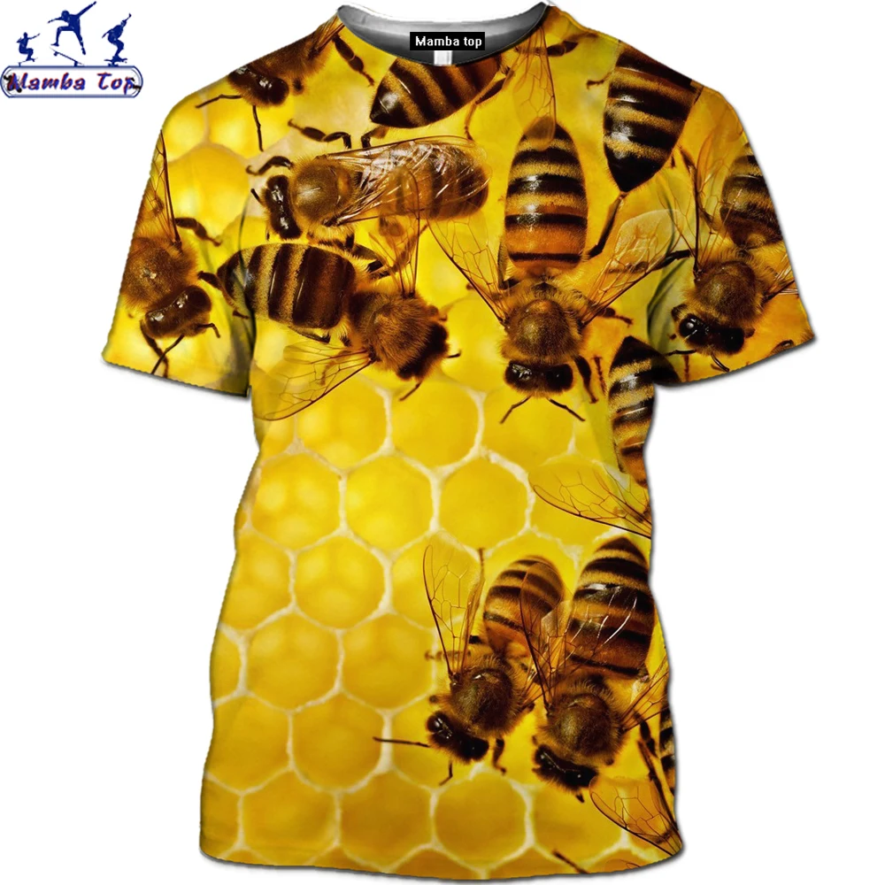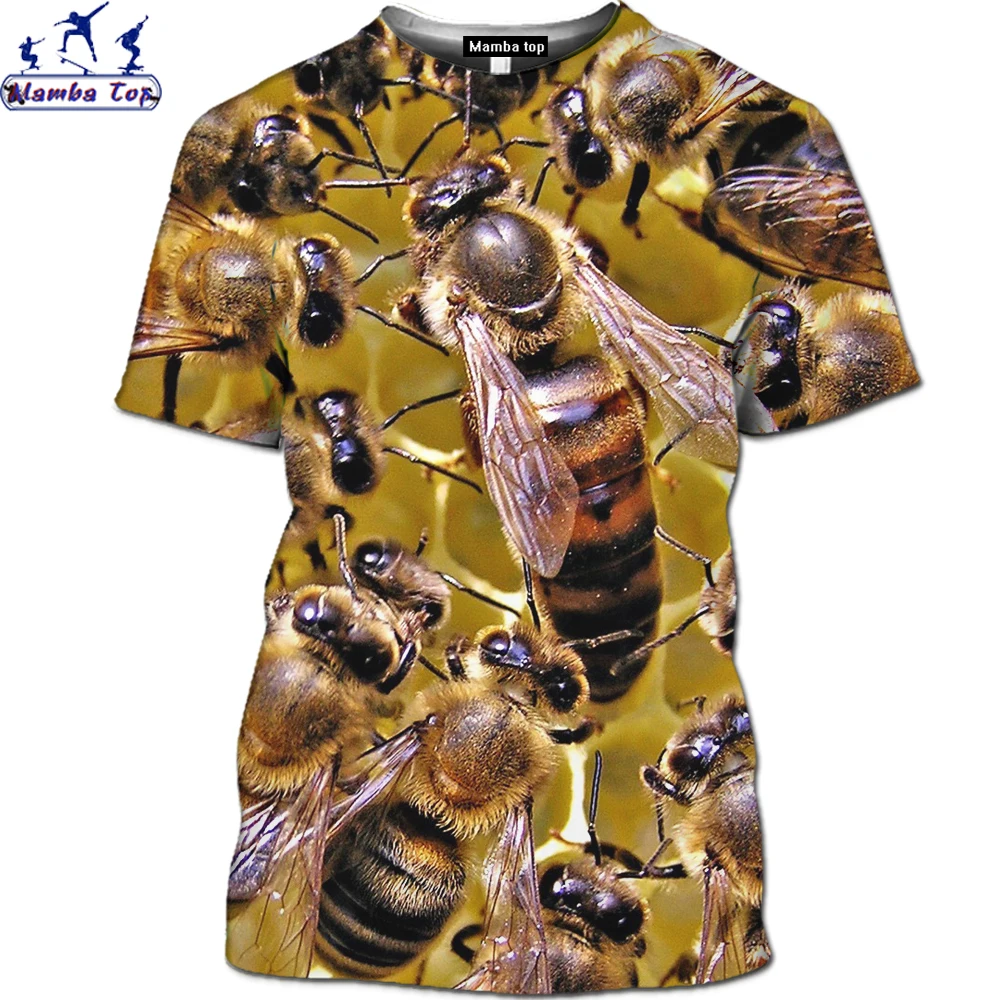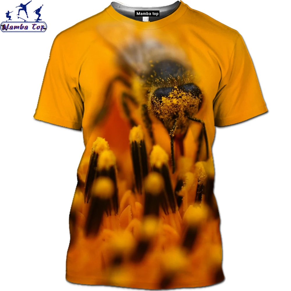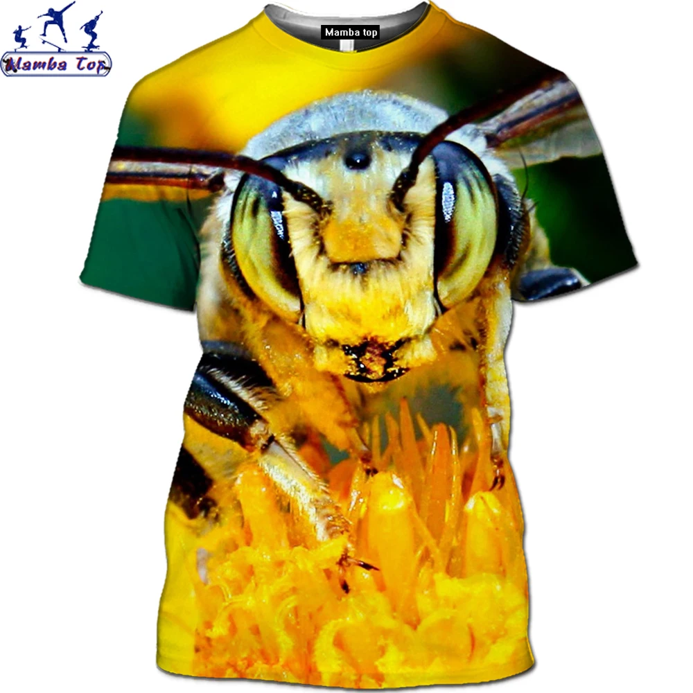 Mamba Топ летняя футболка с коротким рукавом с Пчелкой Повседневная Harajuku ОСА рубашка Пляжная Натуральная мужская футболка лесной Пион цветок насекомое Топ