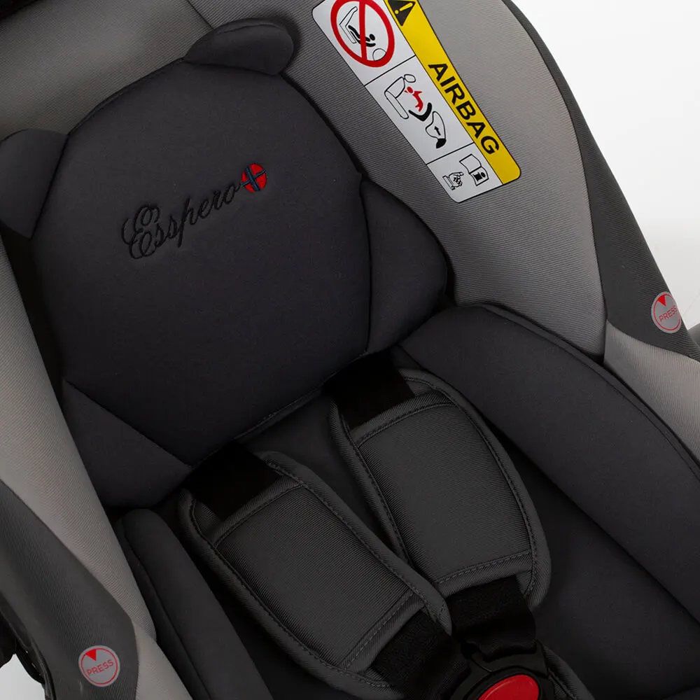 В комплект коляски входит первое автокресло группы 0+, который позволяет перевозить ребенка в автомобиле до 9-12 месяцев или достижения веса 13 кг. В автомобиле оно устанавливается исключительно в противоположном движению направлении, посредством штатных ремней автомобиля. Кресло имеет и собственные трехточечные ремни безопасности с мягкими плечевыми накладками. Есть ручка для переноски, глубокий капюшон.