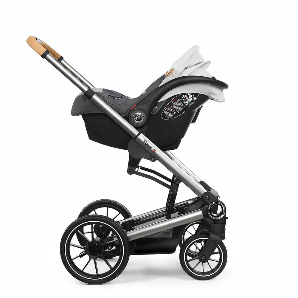 Коляска 3 в 1 Esspero Tour S– это инновации и стиль в рамках новой модульной системы. Высокопрочное и устойчивое шасси из авиационного алюминия позволяют устанавливать одним движением любой из входящих в комплект модулей. Телескопическая ручка с обивкой из эко-кожи регулируется по высоте. Шасси складывается книгой и принимает компактные габариты для хранения или перевозки в автомобиле. Все колеса оснащаются пружинной амортизацией и подшипниками для увеличения маневренности и проходимости коляски. Дополнительный протектор на колесах дает возможность совершать прогулки на любом дорожном покрытии. Передняя пара колес является поворотной и может фиксироваться в одном направлении. Имеется надежный ножной тормоз. В нижней части шасси располагается съемная тканевая корзина.Люлька и прогулочный блок имеют вместительные внутренние габариты, что позволяет комфортно себя ощущать даже крупным деткам. Съемные модули оснащаются глубокими капюшонами и утепленными накидками на ножки. Люлька обладает натуральным хлопковым покрытием внутри. Прогулочный блок является реверсивным, оснащается пятиточечными ремнями безопасности с мягкими плечевыми накладками. Съемный поручень обит мягкой эко-кожей. Подножка и спинка блока могут регулироваться по высоте.Автолюлька группы 0+ дает возможность перевозить в автомобиле детей до 13 кг. Внутри имеются трехточечные ремни безопасности с мягкими плечевыми накладками и анатомический вкладыш. Регулируемый капюшон и ручка для переноски повышают общий комфорт. Модуль можно устанавливать на шасси и использовать как прогулочный блок.Данная коляска дополнительно может оснащаться сумкой для мамы (необходимо докупить отдельно или выбрать полную комплектацию сразу). Она имеет возможность крепиться за ручку коляски и поможет содержать все необходимые аксессуары малыша в одном удобном месте.Люлька: