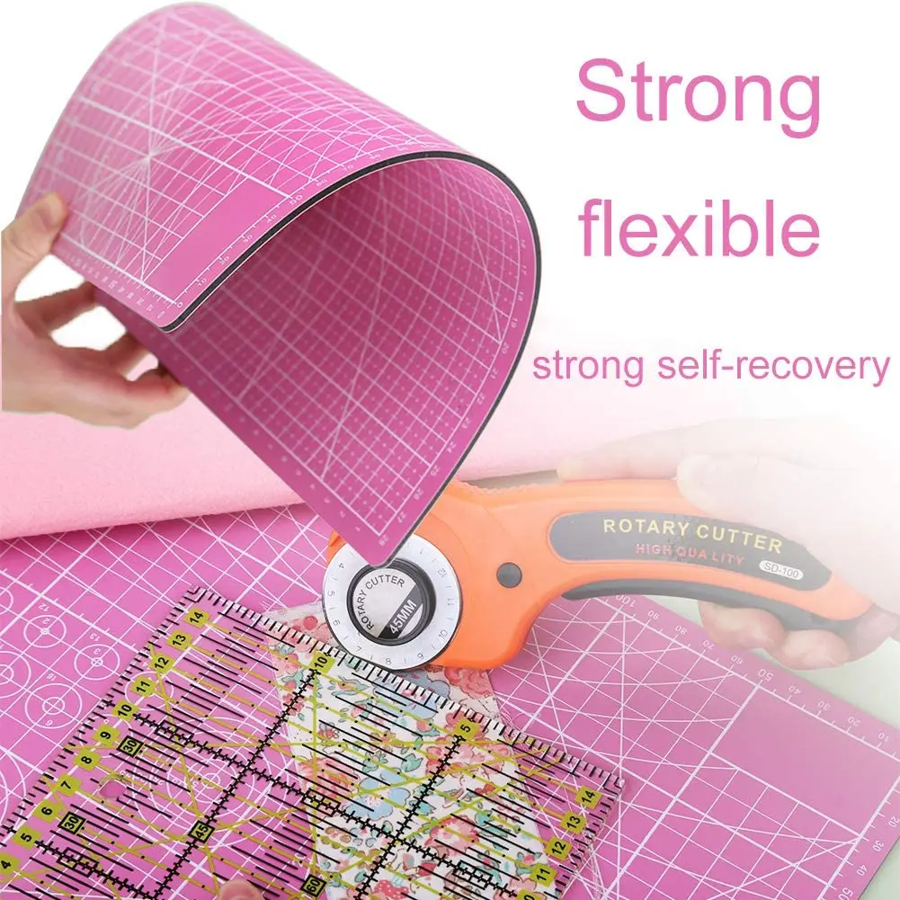 1. Выдвижное лезвие с кнопкой блокировки безопасности, просто нажмите кнопку при работе, может уменьшить несчастные случаи и позволяет безопасно работать. 2. Розовый пакет для хранения: размер А4, можно положить в полный набор роторного режущего набора, легко найти и хранить. Красивый цвет, высокое качество и долговечность. 3. Набор вращающихся резцов включает 5 сменных лезвий, акриловую линейку, линейку из нержавеющей стали, прецизионный нож (5 дополнительных лезвий). Полный набор швейных и стеганых аксессуаров поможет вам завершить ручную работу DIY.