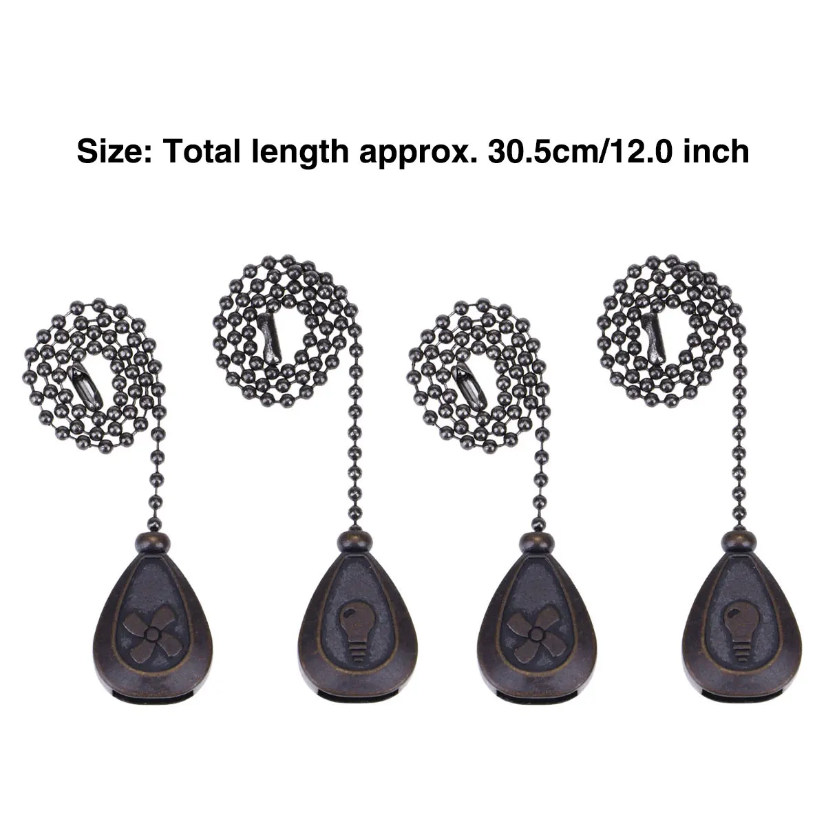 2 узора из 4 удлинителей потолочной цепи, 2 узора с узором лампы, 2 с узором вентилятора, легко определить по разным шаблонам, чтобы узнать, какой из них является правильным переключателем для света или вентилятора.