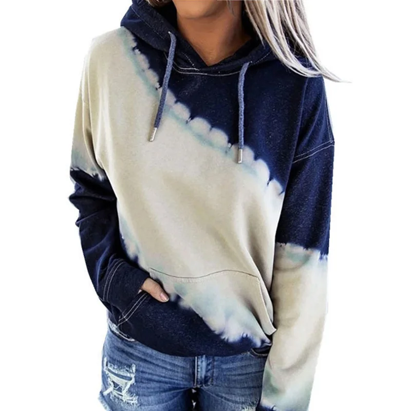 Женская толстовка с галстуком краситель балахон осень флисовый пуловер; Сезон весна-осень; Повседневные женские карманные кофты толстовки, топы Femme 2020 Новый
