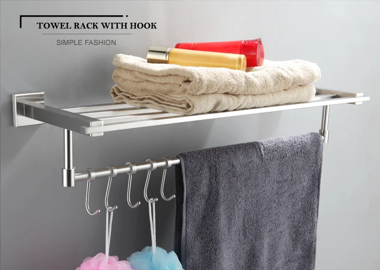 Вешалка для полотенец, ванная комната, Матовый держатель для полотенец, нержавеющая сталь, настенная вешалка для полотенец, полка для хранения с крючком, аксессуары для ванной комнаты