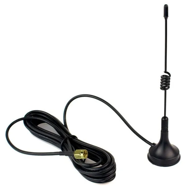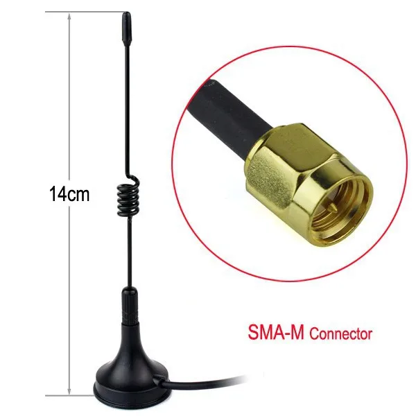 Band: Single band UHF Frequency: 400-470MHz Gain: 2.15dBi Max power: 5W VSWR: less than 1.5 Impedance: 50ohm Connector: SMA Male Polarization: Vertical Radiation: Omni Antenna Length: 14cm Cable Length: 3m