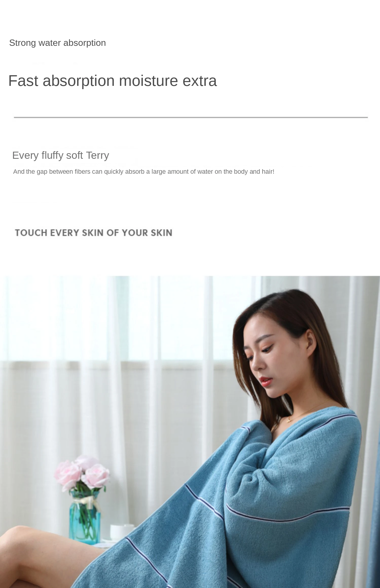 Особенности: мягкий и приятный для кожи, водопоглощающий и быстросохнущий, не легко пролить пух и не выцветать