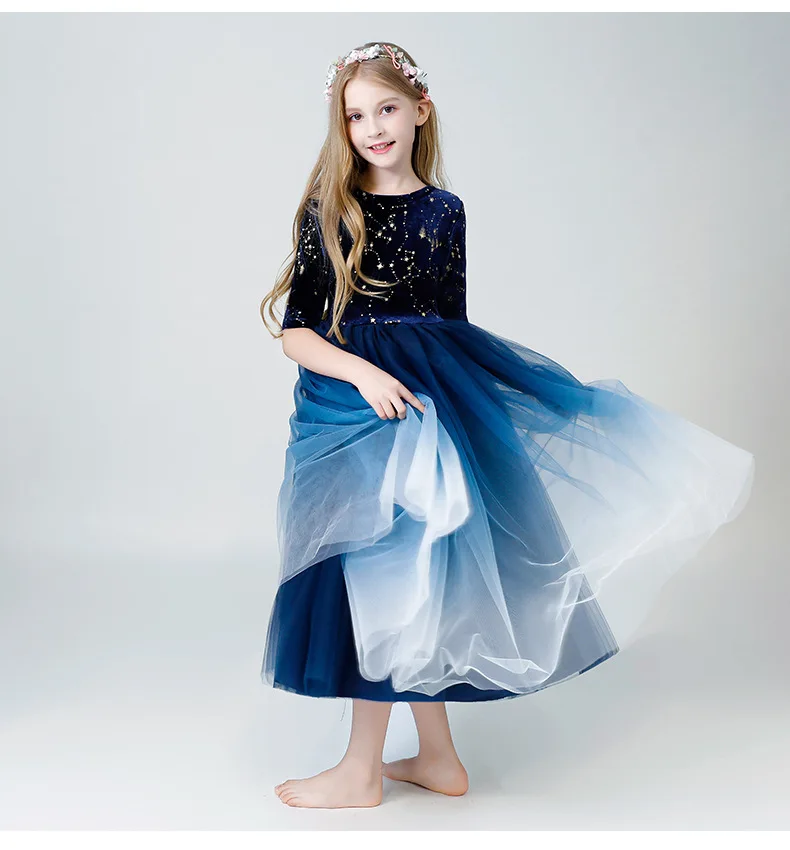 Новогоднее, рождественское платье вечерние платья принцессы для девочек на свадьбу с градиентом звездного неба, длинное торжественное платье для выпускного вечера костюм для девочек