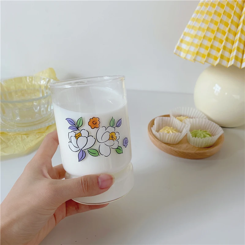 360 мл креативные стеклянные кружки с цветами, чашка для молока, чая, стеклянная кофейная кружка, стеклянная бутылка для воды, Милые Чашки для взрослых, для детей, для дома, вечерние, для питья