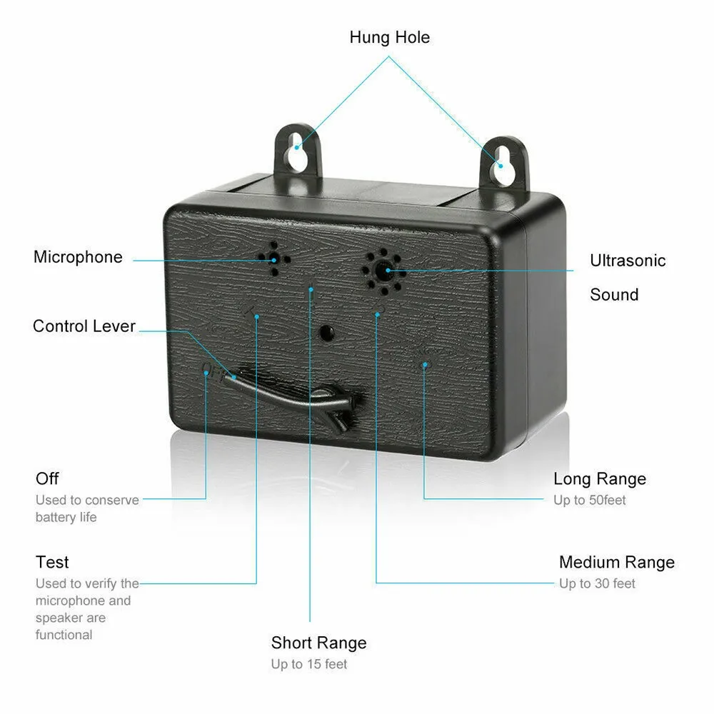 Когда наружный контроль коры находится в пределах досягаемости лай собаки, Внутренний микрофон поднимает звук, и устройство автоматически активируется. Наружный контроль коры излучает ультразвуковой звук. Ультразвуковой звук слышен собаками, но молчит для людей. Испуганный высоким звуком, который безопасен и эффективен, собака должна прекратить лаять, Он свяжет свою лаю с этим неприятным шумом. Когда собака останавливает лай, ультразвуковой звук также останавливается. Наружный контроль коры имеет 3 диапазона уровней и режим тестирования. Он эффективен до 50 футов. Возможно использование для наружного контроля коры Остановите свою лающую собаку Остановите лай собаки ваших Соседов Поезд щенков не лаять Отпугиватель лай собак на походах