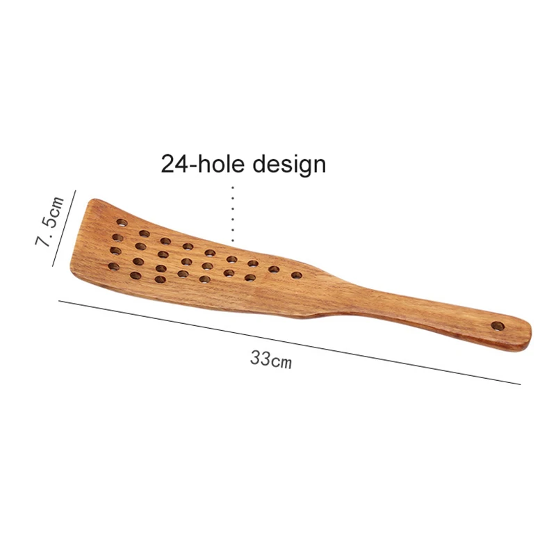 <Удобный дизайн: длинная ручка и широкое прорезное деревянное лезвие подходят для кипячения, переворачивания или приготовления пищи в большом количестве. Слоты будут служить в качестве масла и водостоков.