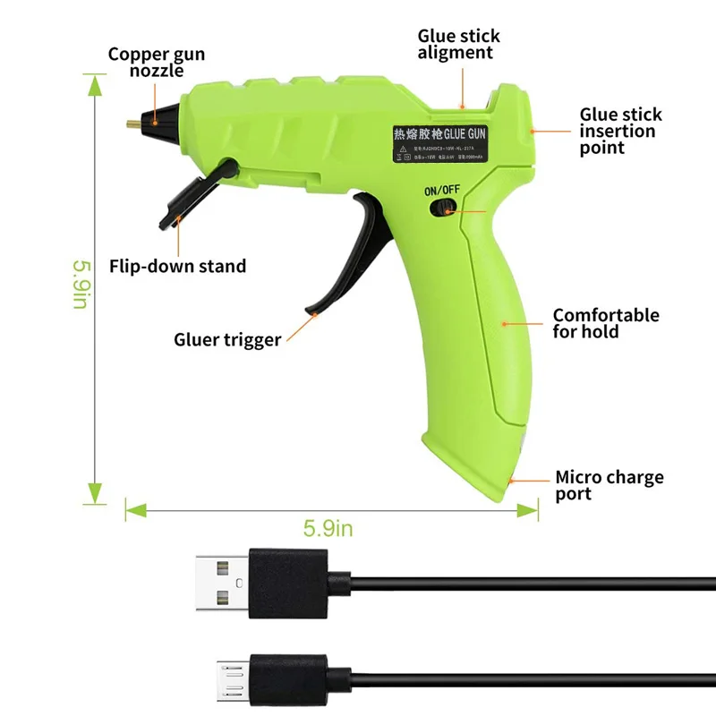 Технические характеристикиНапряжение: 3,7 VЕмкость аккумулятора: 2000 мАч литиевая батарея (встроенный)Время работы: около 80 минутВремя разогрева: 60sДиаметр клеевого клея: 7 ммРабочая температура: около 180 ~ 200 ℃Особенности【Беспроводной для использования 】: простой в использовании, просто вставьте клей-палку, включите переключатель, всего 2-3 минуты, чтобы согреться, быстро Готовьтесь к использованию, а затем нажмите на спусковой механизм. После полной зарядки может использоваться в течение 80-90 минут. Очень удобно, безопасно и легко носить с собой.【Безопасный и эффективный клеевой пистолет 】: с высокотехнологичной электронной технологией нагрева PTC, внутри поместите предохранитель, он нагревается очень быстро и автоматически контролируется температурой. Перезаряжаемый дизайн, USB электрический интерфейс, удобный и быстрый, который удовлетворит ваши требования.【 Высококачественная клейкая лента: 20 шт. клеевых палочек (7*150 мм), суперпрочный клей. И горячий пистолет принимает герметичный дизайн клея, высококачественное медное сопло, устройство пусковой установки контролирует поток клея и поможет вам сэкономить гораздо больше клеевых палочек.【SAFTY USING】: безопасный и удобный выключатель питания с светодиодный. Со съемной поддержкой, чтобы держать пистолет стабильным и вертикальным, и позволяют использовать этот пистолет под любым углом.【Широко используется и гарантия 】: клеевой пистолет используется для DIY, дома, офиса и ремесла, искусства и дома и быстрого ремонта, Рождественское украшение/подарки так далее.Список посылка1 * клеевая машина1 * USB шнур1 * нож для резки1 * прокладка для протекания клея3 * пальчиковые рукава20 * клеевые палочки