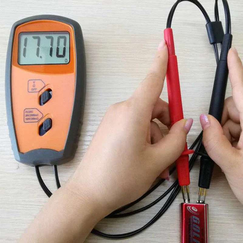 Красный свинец должен быть подключен к высоковольтному концу батареи (положительная сторона), Черный свинец должен быть подключен к низкому напряжению батареи измеренного (отрицательная сторона);