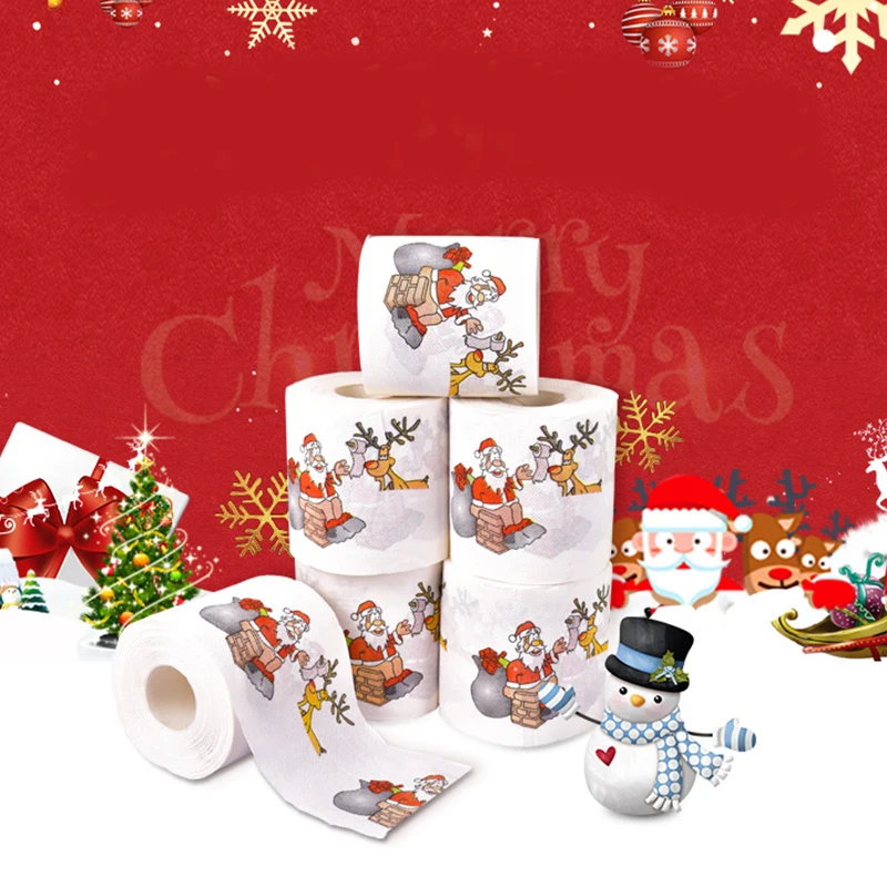 NEW Christmas Pattern Series Roll Paper Christmas Decorations Prints cute Toilet Paper Christmas Decorations For Home HOT