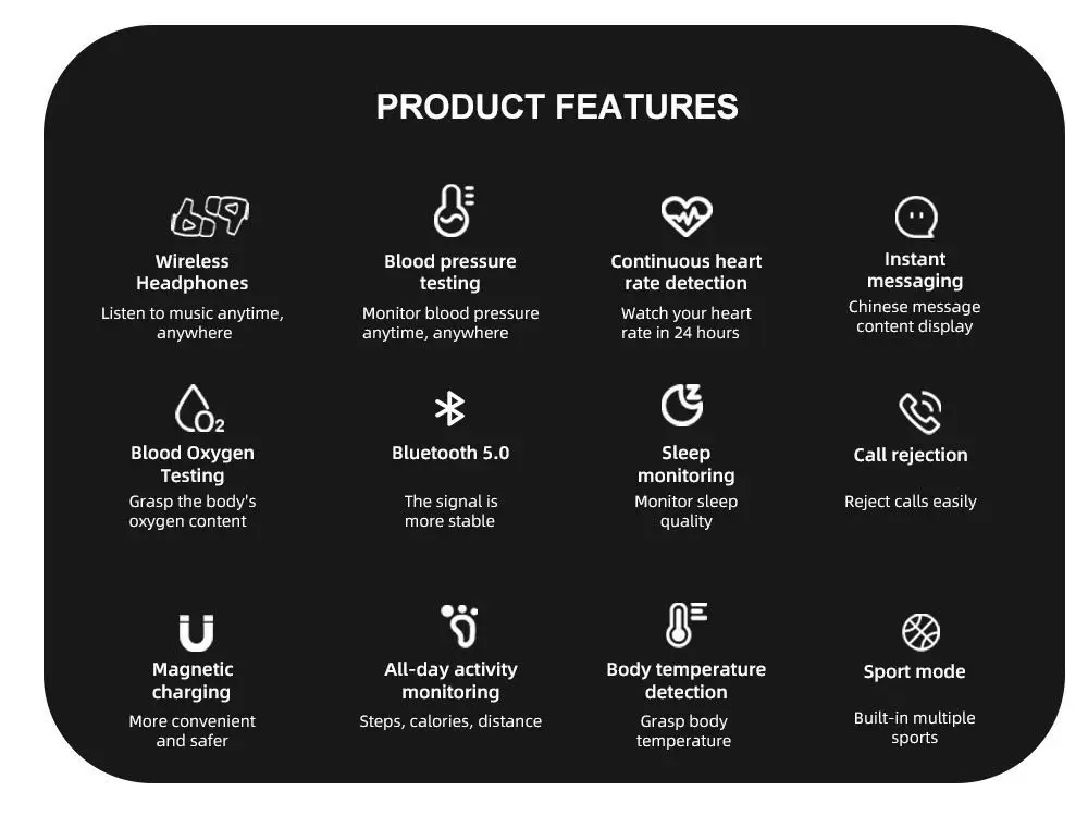 Беспроводной Bluetooth гарнитура + Умные часы сопровождают вас к упражнениям Привнесите более портативный образ жизни Новый опыт сочетания Умных часов и наушников