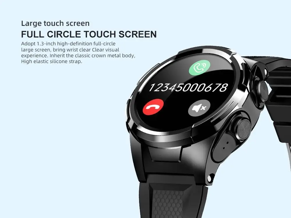 Большой сенсорный экран Принять 1,3 дисплея высокой четкости в форме круга Большой экран, четкое изображение запястья Опыт. Наследуем классический металлический корпус короны, Эластичный Силиконовый ремешок.