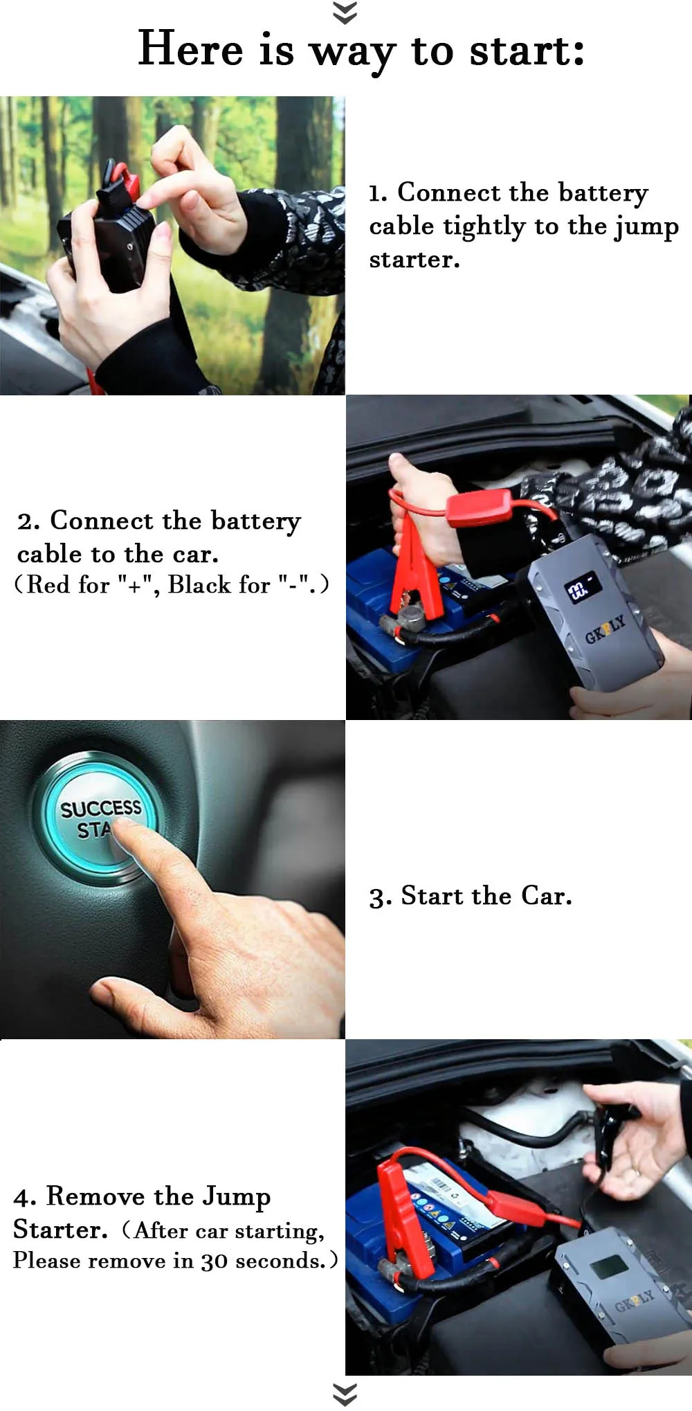 1. Для вашей безопасности, пожалуйста, не разбирайте стартер скачка. После демонтажа самостоятельно, мы не будем обслуживать любые возникшие проблемы.