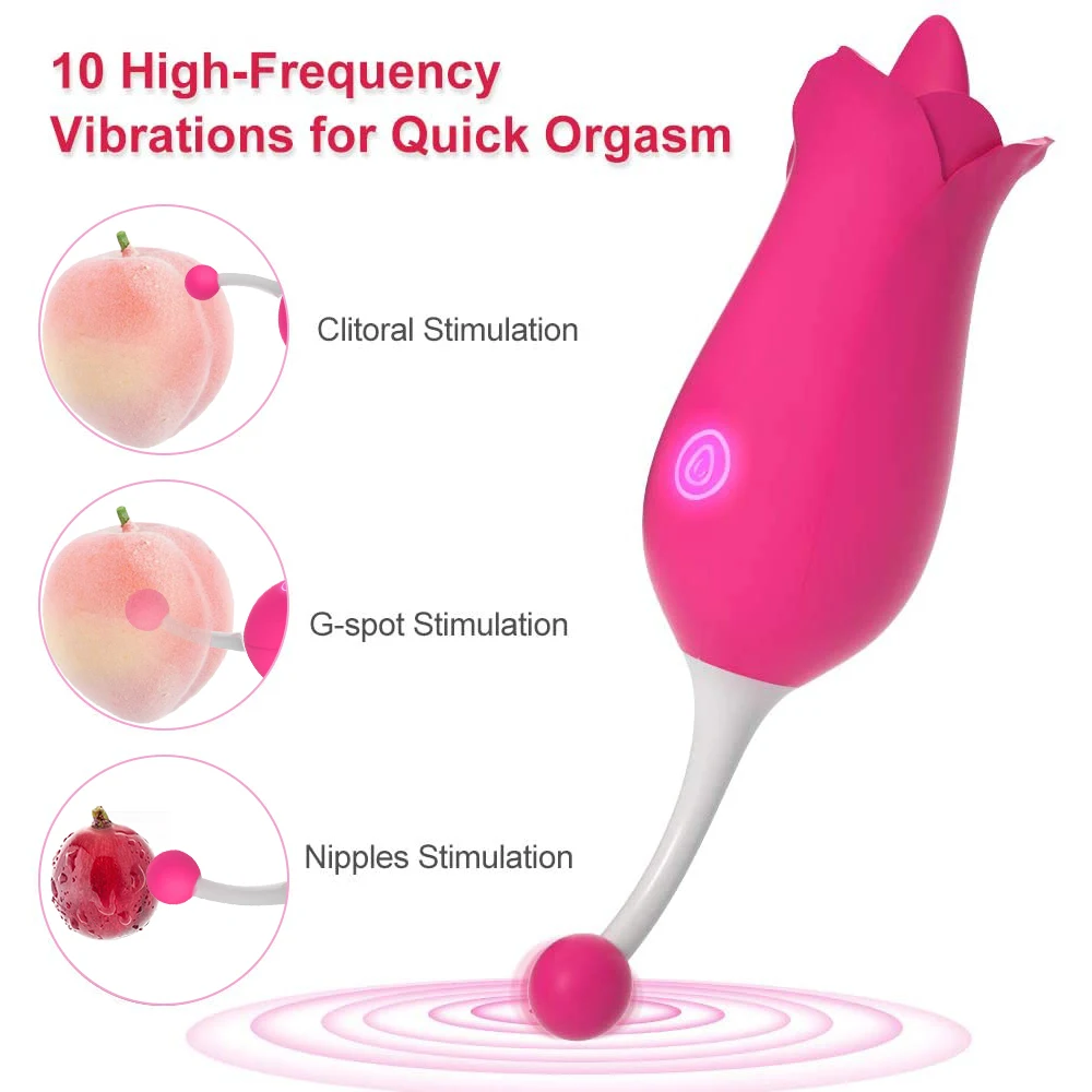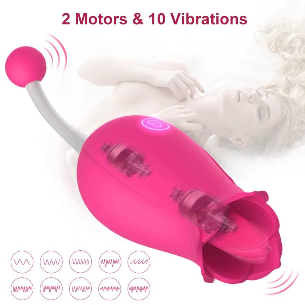 ❤Лизание язык Вибратор-этот вибратор находится в форме розы, голова стемен часть предназначена, чтобы быть лизацией Массажер для языка. Умеренно Мягкий язык будет слизывать ваш клитор, соски, влагалище и другие чувствительные области от нежных до диких, давая вам зуд и завораживающий влажное удовольствие.