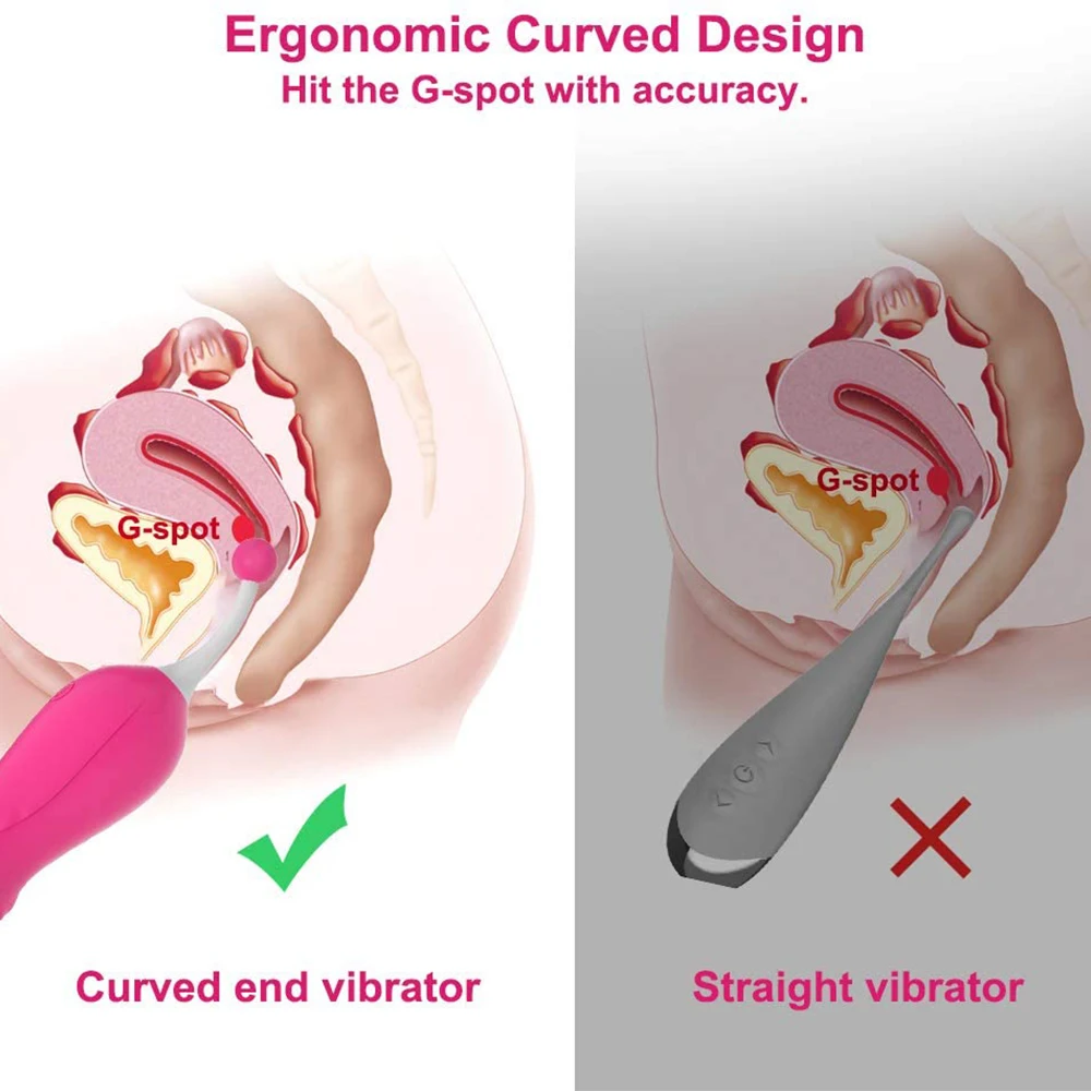 ❤Мощная высокочастотная вибрация-Слегка изогнутая ручка и качественная силиконовая головка составляют мощный высокочастотный вибратор, он не только может использоваться для стимуляции клитора и сосков, но также используется для стимуляции точки g. Изогнутая конструкция стимулятора выглядит хорошо, но также точно влияет на точку G.