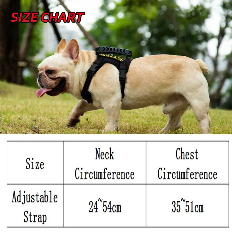 Военный жилет для собак: высокопрочный нейлоновый материал 1000D. Он прочный и устойчивый к загрязнениям/воде/истиранию. Упряжь для щенков в стиле K9: подходит для маленьких средних собак, с регулируемыми лямками для разных типов тела, таких как бигль, Бишон Фрис, Бордер терьер, Бостон терьер, французский бульдог, Джек Рассел терьер, манчестер терьер. (Не подходит для чихуахуа, йоркширского, миниатюрного пиншера.) Быстрая релаза: быстрая ручка для переноски и быстросъемная пряжка. Посылка: 1 шт. поводок для собак и 2 шт. декоративная нашивка Примечание: Пожалуйста, измерьте живот и шею вашей собаки перед заказом.