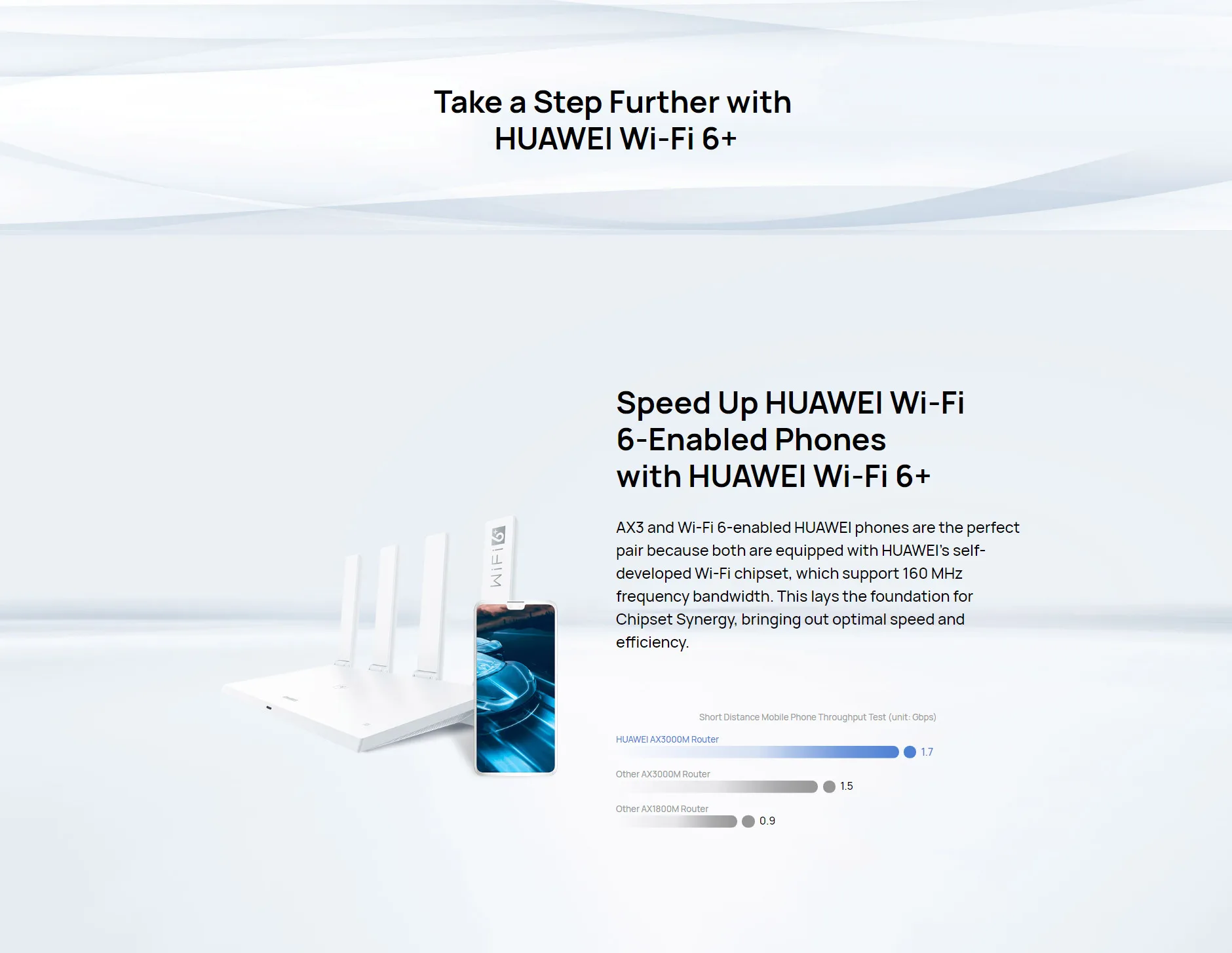 AX3 и Wi-Fi 6 с поддержкой телефонов HUAWEI являются идеальным, потому что оба оснащены HUAWEI собственной разработки Wi-Fi чипсет, которые поддерживают 160 МГц полосы частот. Это закладывает основу для сочетания чипсет, обеспечивая оптимальную скорость и эффективность.