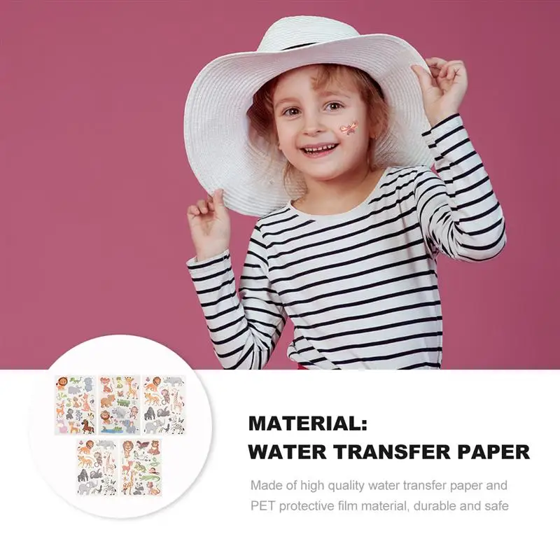 5 листов, мультяшный животный стикер для тату, переводная бумага для воды, наклейки для лица, наклейки для детей, наклейки для тела, тату для детей, случайный стиль