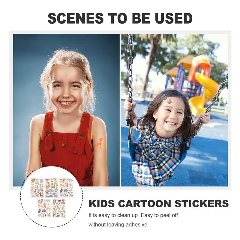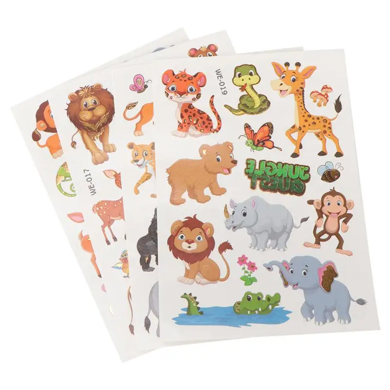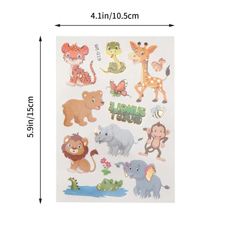 Это набор из 5 листов мультяшных животных. Он хорошо изготовлен из высококачественной бумаги для переноса воды и материала защитной пленки для домашних животных, прочный и безопасный. Дизайн с рисунком животных из мультфильма, очень милый и интересный, вашим детям понравится.