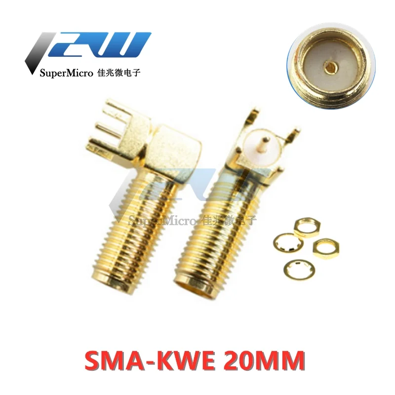 5 шт./лот длиннее 20 мм SMA гнездо через отверстие штекер правый угол 90 градусов (SMA-KWE) PCB крепление Разъем RF адаптер