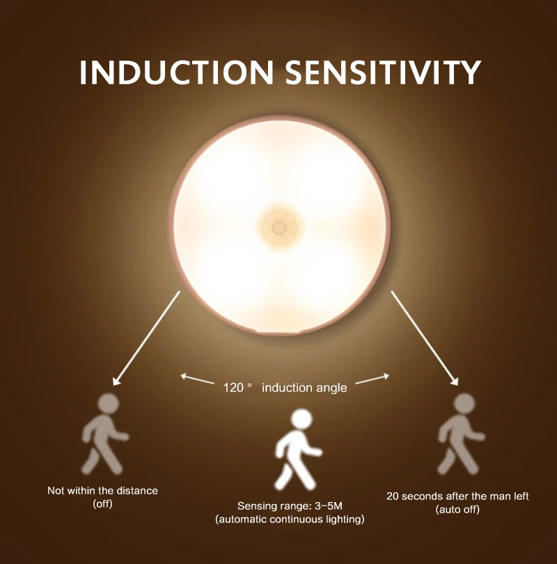 ● Когда вы используете его в первый раз, пожалуйста, выберите совершенно темную среду для тестирования. Индукция человеческого тела не начнется, когда светильник будет ярким.