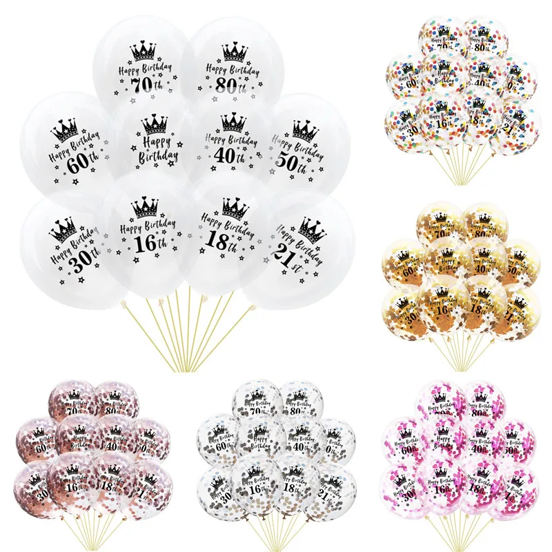 10 шт 12 дюймов конфетти шары латексные золотые черные шары на день рождения 18 21 30 40 50 лет годовщина свадьба украшение
