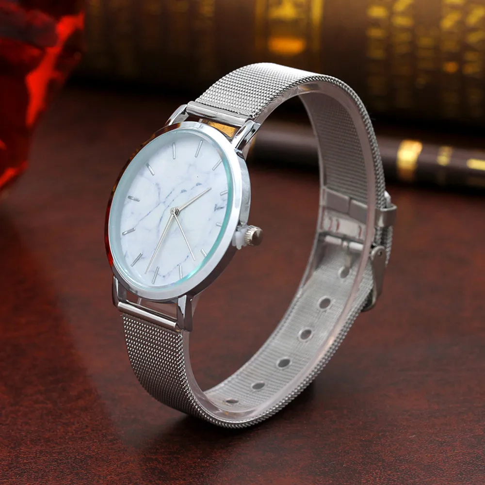 Модные женские кварцевые наручные часы из нержавеющей стали с мраморной поверхностью
