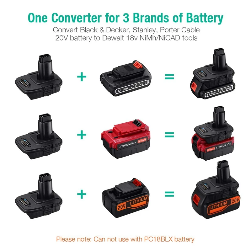 Преобразование Black & Decker Porter-Cable Stanley 20V литиевая батарея в Dewalt 18V NiCad NiMh аккумулятор DC9096 DW9096 DC9098 DC9099 DW9099 и т. Д. Вы можете использовать инструменты Dewalt 18V NiCad & NiMh с этим адаптером + Аккумулятор Black & Decker lbxr20 или аккумулятор Porter-Cable PCC685L или аккумулятор Stanley FMC680L.