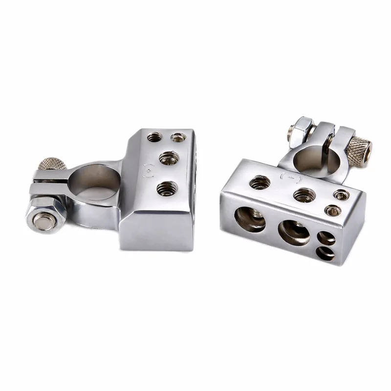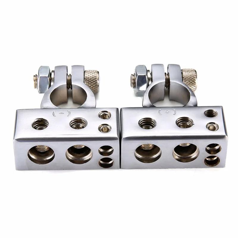 Положительные и отрицательные клеммы принимают один 2 калибра, один 4 калибра и два 8 калибровочных соединения.