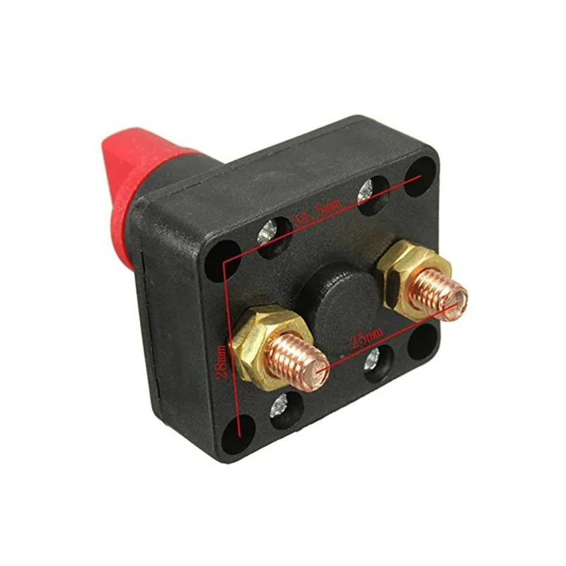 100% новый и высококачественный! Материал: пластик Цвет: красный и черный Размер: прибл. 43*37*64 мм Диаметр винта: прибл. 6 мм Расстояние между двумя положениями переключателя: 25 мм Номинальный ток: А (макс. А) Рабочая мощность 100 А, максимальная мощность 300 А Напряжение: 60 В постоянного тока Контактное сопротивление: 50 м Сопротивление изоляции: 100 м Диэлектрическая прочность: 1500 В переменного тока/1 мин Срок службы: 10000
