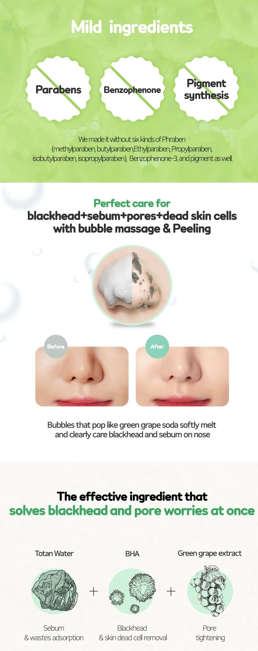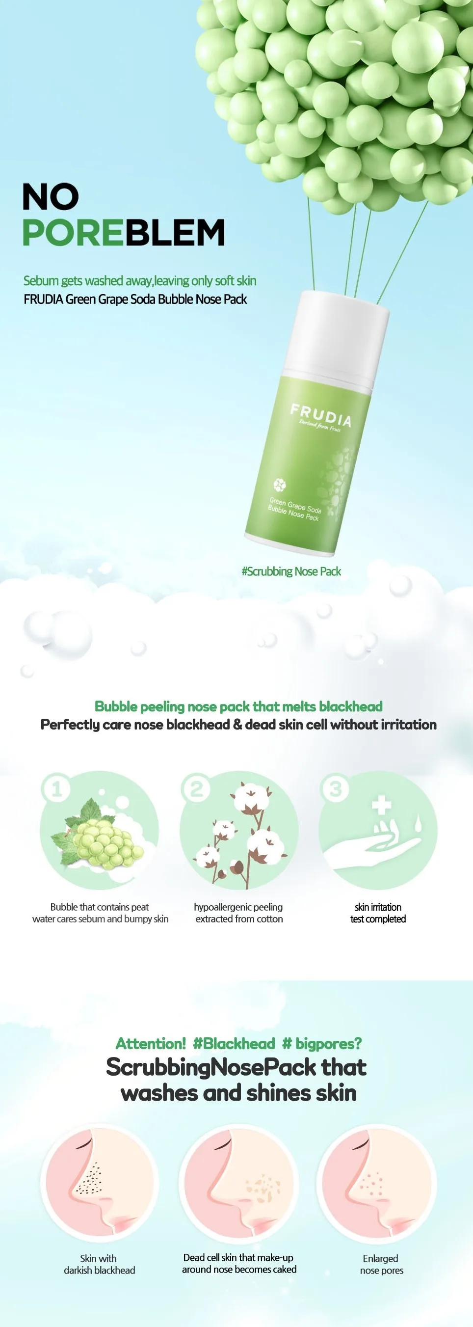 Зеленый виноградный Сода пузырьковый Набор для носа-фрукта, пилинг, набор для носа, черная омертвевшая кожа, тонер, косметическая стирка, Очищение лица, корейский