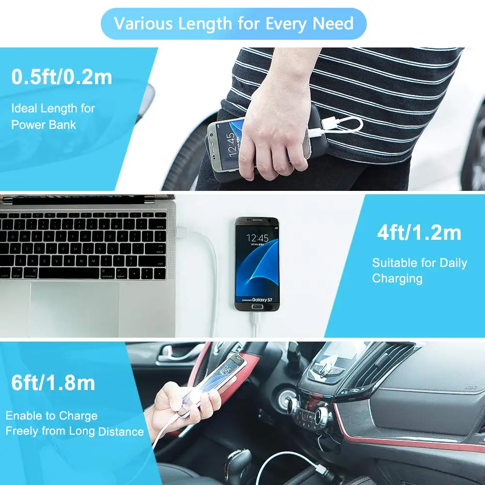 【Various Length for Every Need】 0.5ft, 4ft, 6ft Different length for your need 【UNIVERSAL COMPATIBILITY】 with the most popular Android and Windows smartphones, tablets, and other devices such as the Samsung Galaxy Tab, Galaxy S6, Galaxy Note 4, HTC One, Motorola Moto X, Sony Xperia Z3, LG G Pro 2, G Flex2, Amazon Kindle Fire HD and HDX, Google Nexus 6, Nexus 7, Dragon Touch, HP Stream 7 Tablet, Raspberry Pi, Lonve Blue 16GB MP4/MP3 Player and SanDisk Sansa Clip+ 8 GB MP3 Player 【High Speed Tested】Support Sync data at 480 Mpbs. Charge Android and Windows smart phones, tablets & MP3 players, digital cameras / camcorders & more. 【Fast Charge】Save charge times up to 9% faster than most standard alternatives and 480Mbps data transfer via USB 2.0 (backwards compatible) 【Warranty】CableCreation offers with Items Life Time Warranty