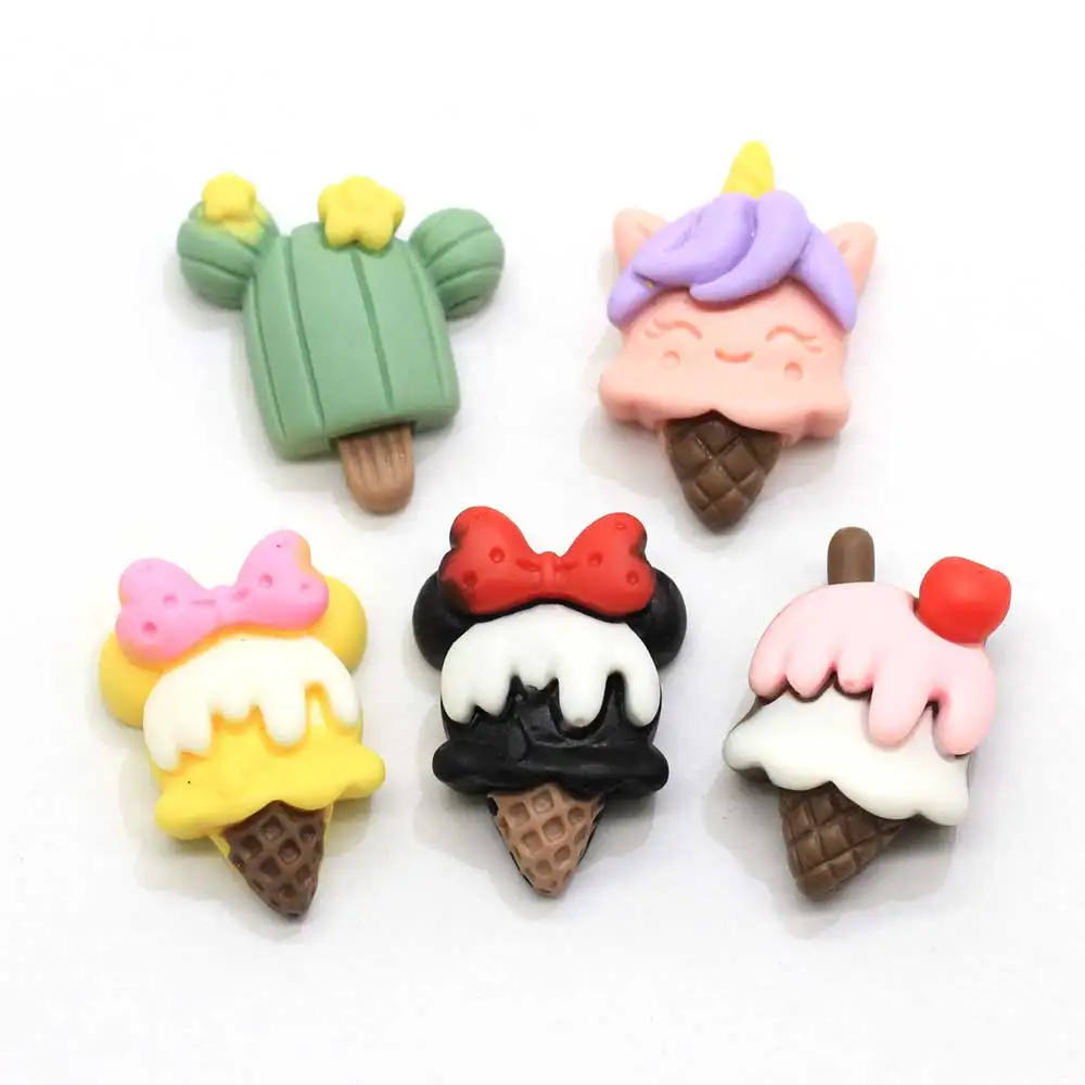 Каваи Смола милый мультфильм Мороженое Flatback кактус голова мыши Кабошоны-еда для волос Лук центры DIY Скрапбукинг