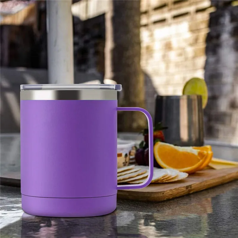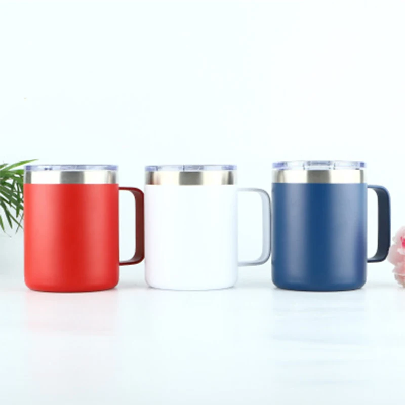 Новое поступление, 12 унций, чашки для кофе с ручкой, с двойной стенкой, портативные, из нержавеющей стали, бокал для вина, изолированные, вечерние чашки для пива