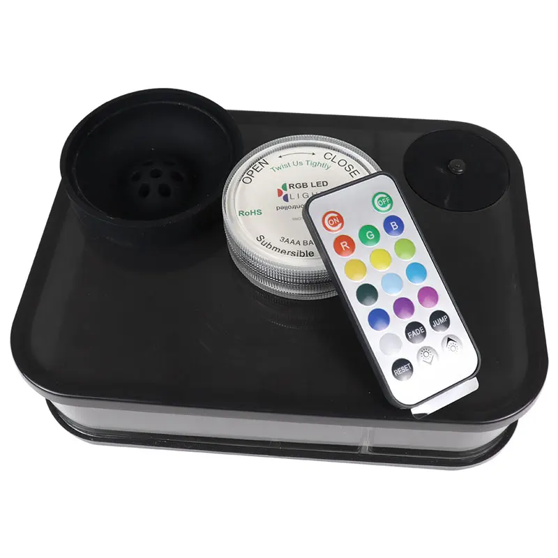 Акрил, сплав, силикон, пластик, светодиодная лампа и т. Д. Основание кальяна: 21,5*15,5*5,5 см Вес: около 1000 г длина шланга: 128 см Цвет: красный, черный, оснащен светодиодным Дистанционное управление Цвет Изменение светодиодные лампы, светильник-заменитель и дым создают идеальную атмосферу. (Без аккумулятора)