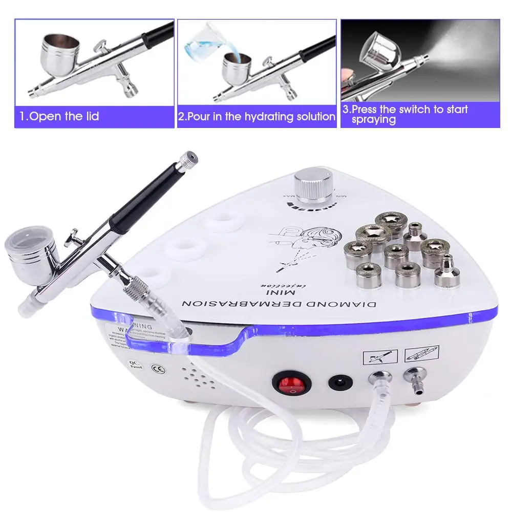 Это креативное улучшение дермабразии микрокристаллов. Алмазная дермабразия обеспечивает нехирургическую очистку кожи, используя стерильные алмазные головки для абразивной или потереть верхний слой кожи, затем удалите частицы вместе с любой грязью и омертвевшей кожей. Эта процедура удаляет остатки кожи, дефекты, пятна, морщины и нежелательные пигментации на коже. Умеренное использование алмазной дермабразии, сопровождается продуктами кожи, которые проникают через верхний слой кожи, который достигает уровня дермы, помогает восполнять натуральные питательные вещества, восстанавливает активность клеток и способствует здоровью кожи. Все кончики сделаны деликатно и могут непосредственно близко к коже для безопасного и гигенного лечения. Нет необходимости в хрустальных картриджах или воздушном насосе для доставки кристаллов к коже, так что нет шрамов и не повредит кожу.