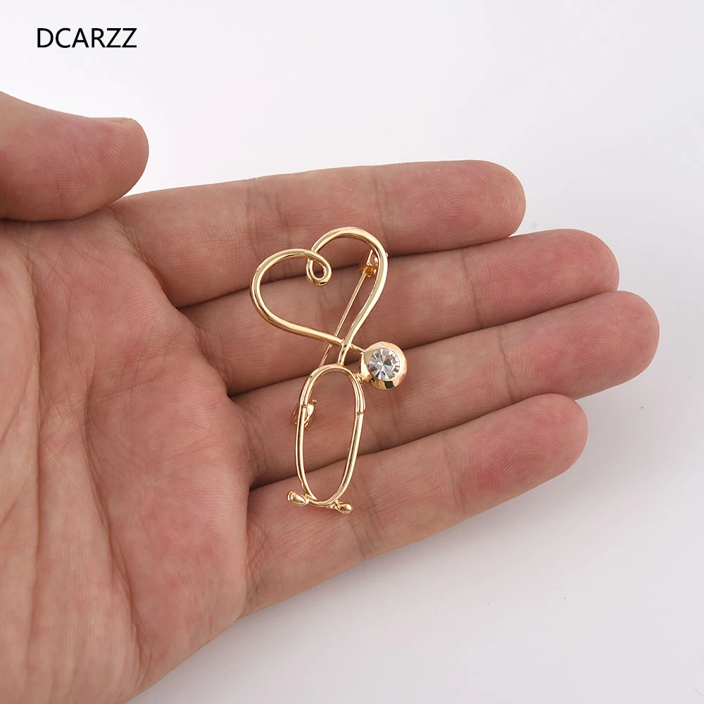 DCARZZ Золотая заколка в виде стетоскопа, медицинская брошь, винтажное ювелирное изделие, медсестры, доктора, выпускники, кристалл, романтические булавки с отворотом, женский подарок