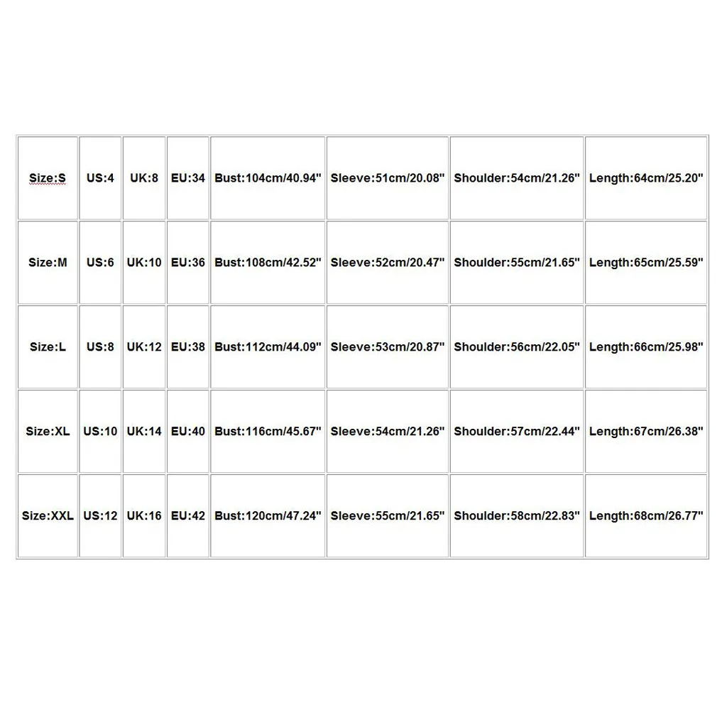 Размер США Великобритания ЕС Бюст Рукав Плечо Длина S 4 8 34 104 см/40,94'' 51 см/20,08'' 54 см/21,26'' 64 см/25,20'' М 6 10 36 108 см/42,52'' 52 см/20,47'' 55 см/21,65'' 65 см/25,59'' L 8 12 38 112 см/44,09'' 53 см/20,87'' 56 см/22,05'' 66 см/25,98'' XL 10 14 40 116 см/45,67'' 54 см/21,26'' 57 см/22,44'' 67 см/26,38'' XXL 12 16 42 120 см/47,24'' 55 см/21,65'' 58 см/22,83'' 68 см/26,77''
