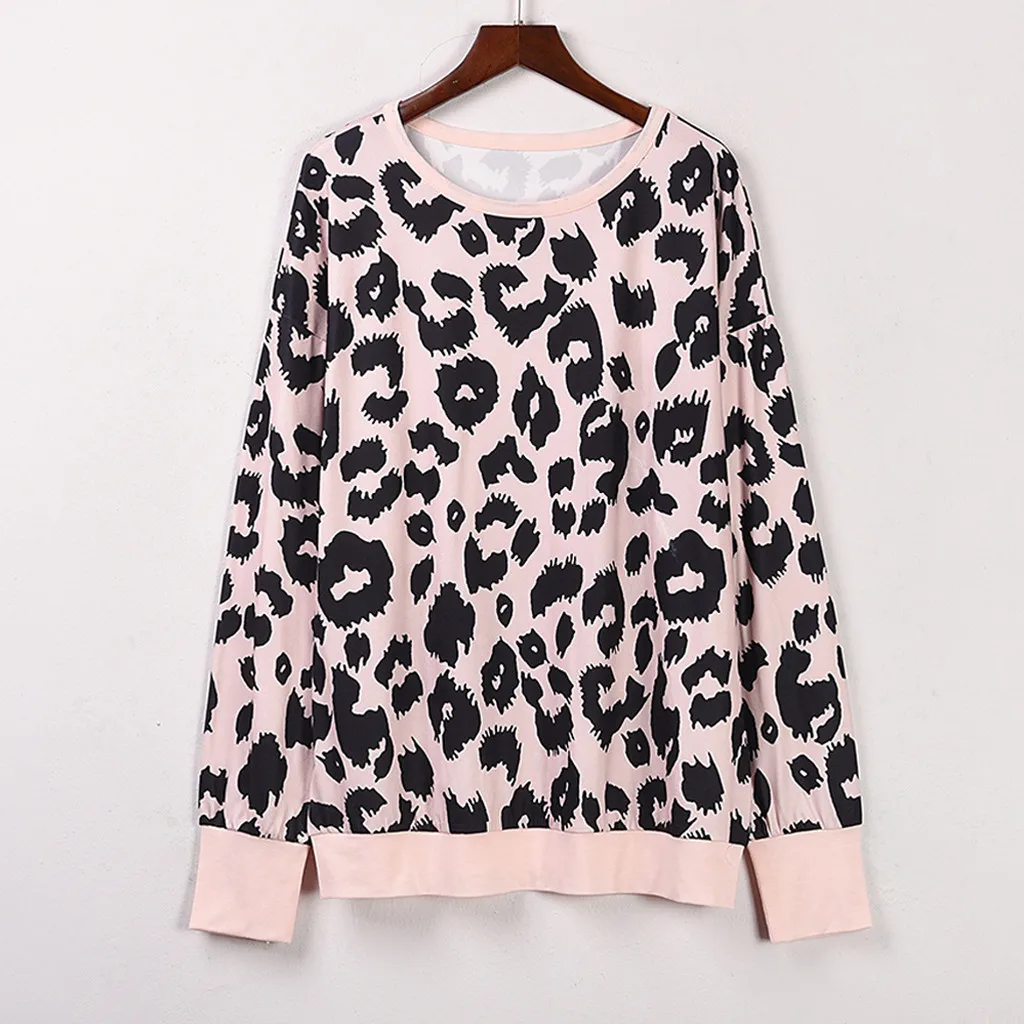 Модный женский пуловер с круглым вырезом и леопардовым принтом с длинными рукавами, топы