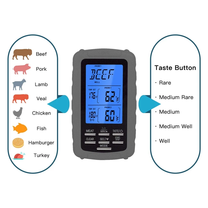 Дистанционный цифровой беспроводной термометр для барбекю, Кухонный Термометр для приготовления пищи с двойным зондом для духовки, кухни, мгновенного R